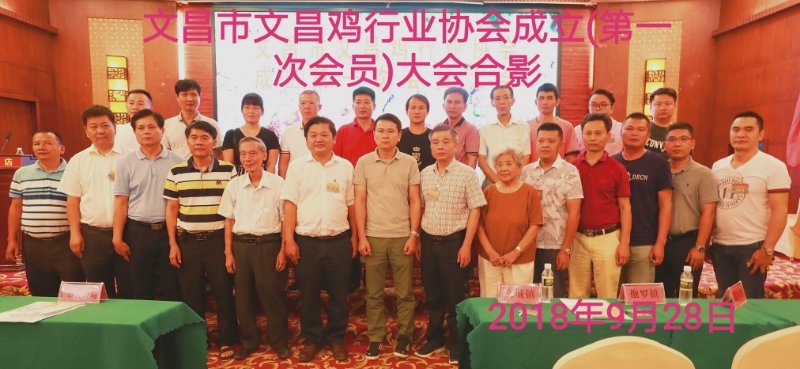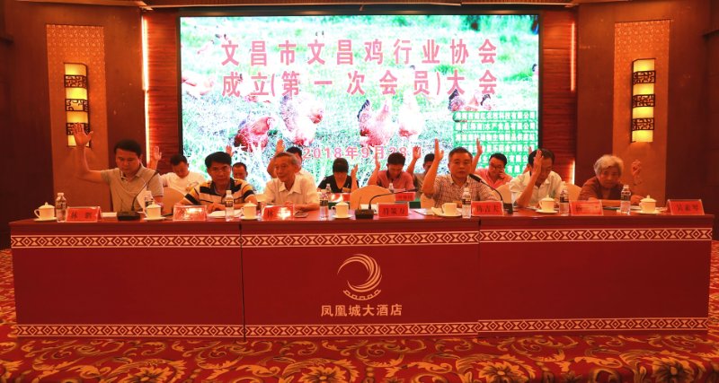 2018年9月28日上午,文昌市凤凰城大酒店张灯结彩,一派欢乐喜庆景象。文昌市文昌鸡行业协会成立大会在此隆重召开。全市近百名文昌市文昌鸡行业协会会员,同前来祝贺和指导工作的领导、专家、嘉宾欢聚一堂,共商文昌鸡产业发展大计。民主选举产生了以林鹏为会长,邢勇、张庆、颜仁政、韩喜畴、魏海洲为副会长,颜伟为秘书长的第一届理事会。授予邢益师、杨来日、颜为乾、吴素琴、于吉英为名誉会长。