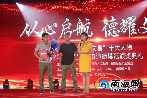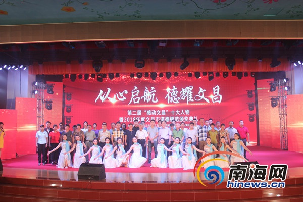 南海网、南海网客户端海口9月19日消息(南海网记者马伟元)9月19日晚,秋风送爽,椰果飘香。“从心启航德耀文昌”——第二届“感动文昌”十大人物暨2018年度文昌市道德模范颁奖典礼在文昌市青少年活动中心小蓓蕾剧场隆重举行。南海网、南国都市报新媒体微博、微信等多平台同步直播了颁奖盛典,数十万网友通过网络在线直播方式,分享了这场一年一度的精神盛宴。
