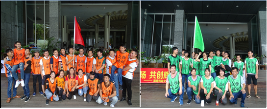 教练首先介绍了拓展培训的由来,然后通过一系列欢快的活动营造团队氛围,建立相互信任的基础。紧接着教练通过员工各自的报数来组建两个团队,分别是红星队、战斗鸡队。在两队成员的积极参与下,两队在规定时间内都完成了队名、队旗、队呼与队歌的设计,这都充分体现了传味人的集体智慧与团队精神。