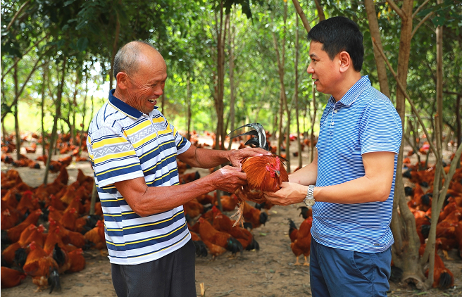 二、对有劳动力、无养殖场地的贫困户,采取“公司+村集体+贫困户”模式,即村委会提供场地、搭建鸡舍,贫困户参与养殖。村委会分成收益的30%用于发展村集体经济,贫困户享受收益的70%。该模式有效整合了多方资源,优势互补,实现公司、村集体及贫困户三方共赢。至今,传味“公司+村集体+贫困户”模式已在文昌市水北村委会、凤尾村委会、抱功村委会,琼中县新林村委会,琼海市三洲村委会、深造村委会,乐东县只文村委会等村集体成功复制,开花结果。